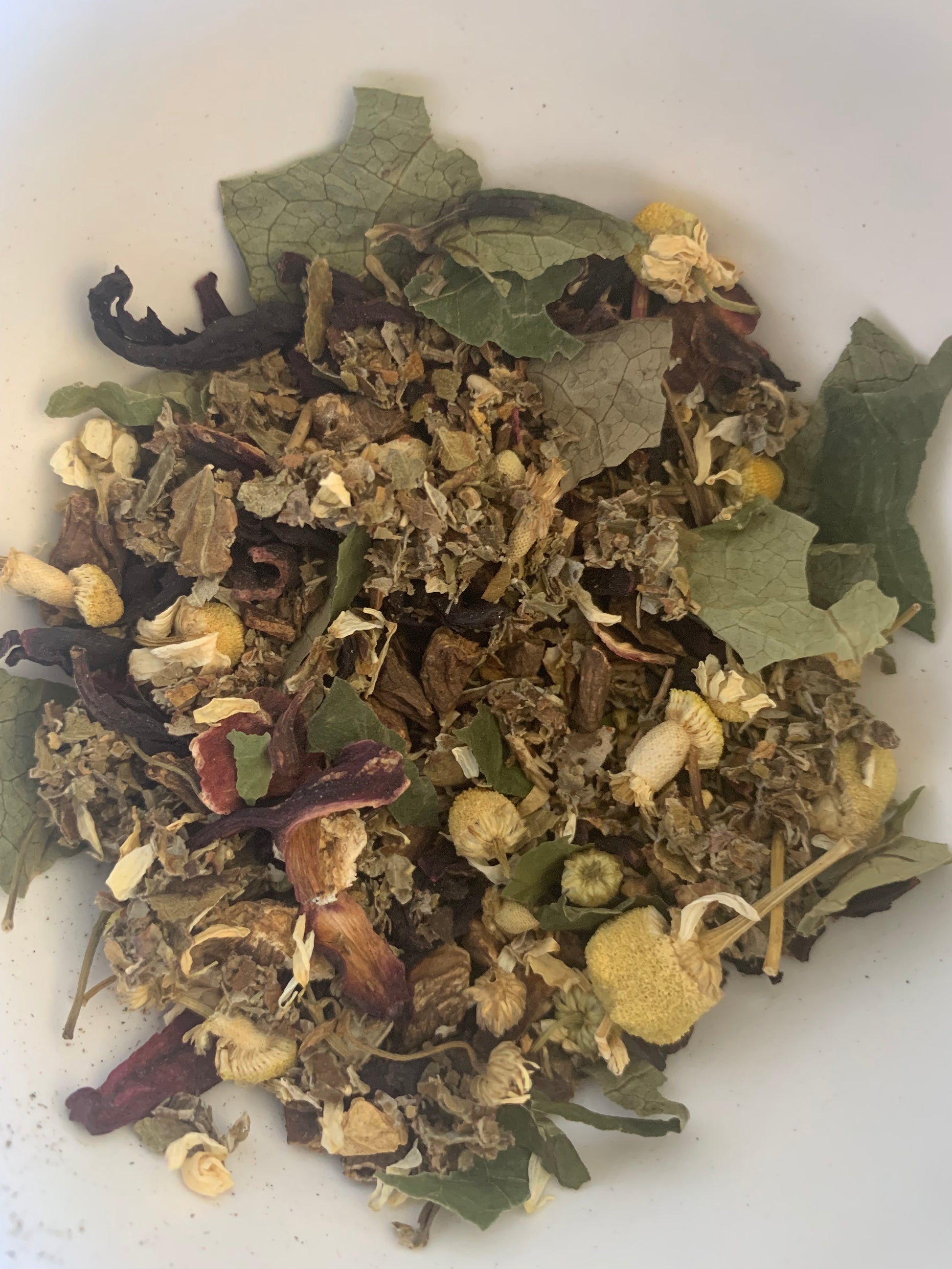 Chamomile, Hibiscus, Raspberry Leaf, and Kawakawa